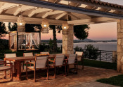 Pred prízemím sa nachádza veľká krytá terasa s nádherným výhľadom na more, ideálna na romantické večery alebo pohodové popoludnie s rodinou.