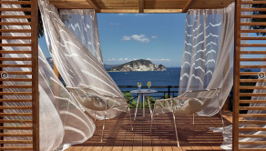 Výhľady, ktoré vyrážajú dych: užite si krásne výhľady na záliv Laganas, ostrov Marathonisi (domov chránených morských korytnačiek Caretta-Caretta) až po Peloponéz. Všetky spálne majú prístup na veľké verandy, odkiaľ môžete s obdivom hľadieť na krásy Jónskeho mora.