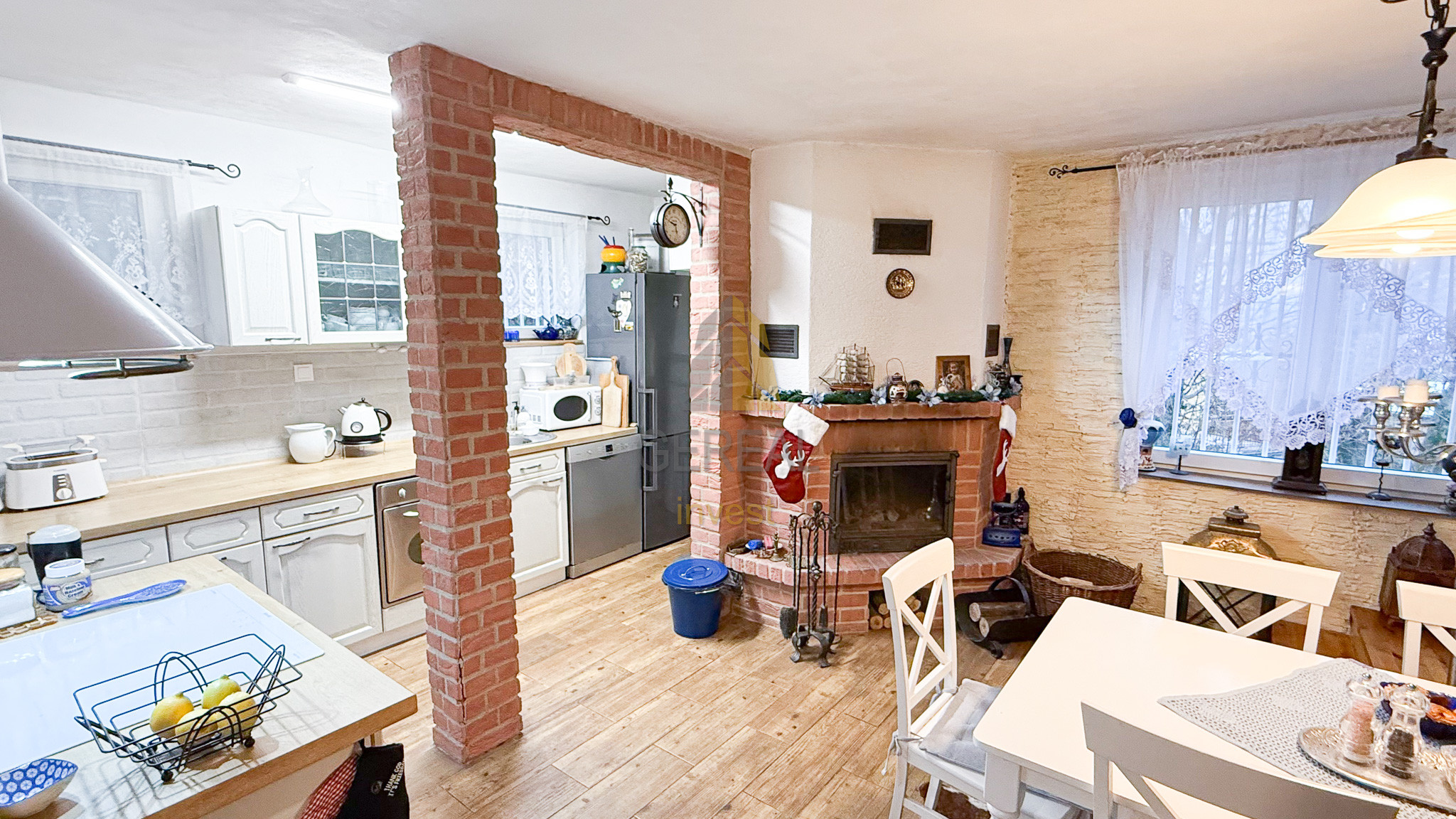Kúrenie: Kombinovaný systém zabezpečujúci tepelný komfort počas celého roka – elektrické podlahové kúrenie, krb v spoločenskej časti, infra panely a elektrické radiátory na poschodí.