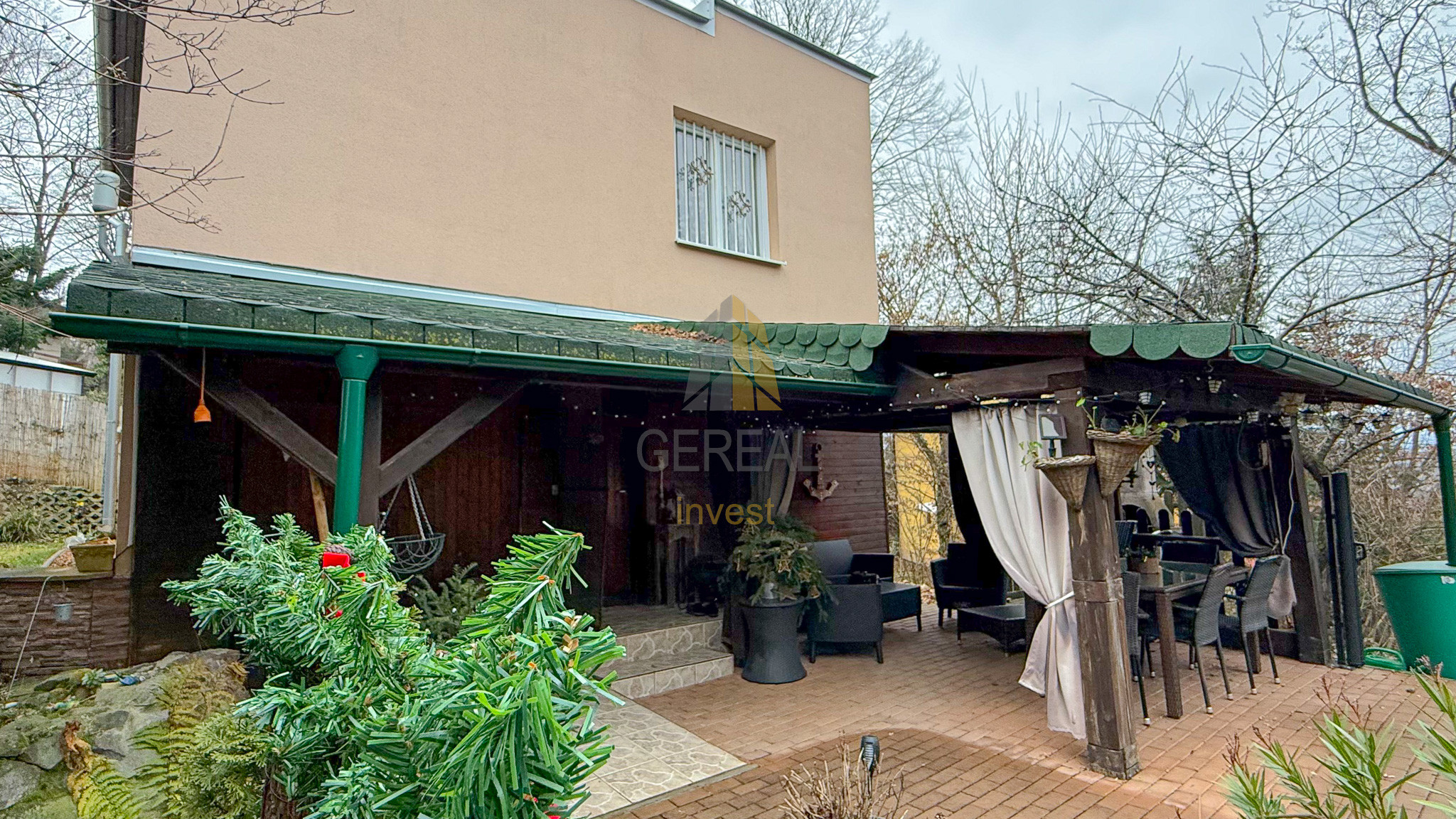 K chate prislúcha veľkorysá krytá terasa o rozlohe 30 m2, ideálna na relax a vonkajšie stolovanie.