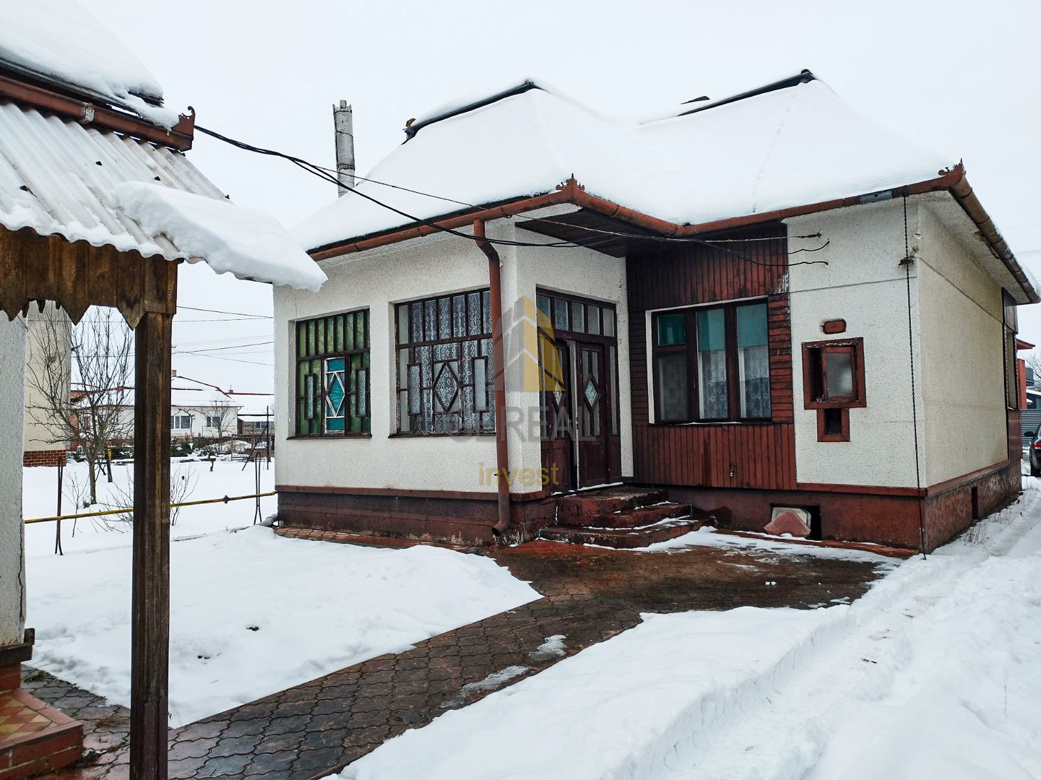 Rodinný dom so štvorcovým pôdorysom je čiastočne podpivničený a postavený z kombinácie kameňa, tehly a kvádra.