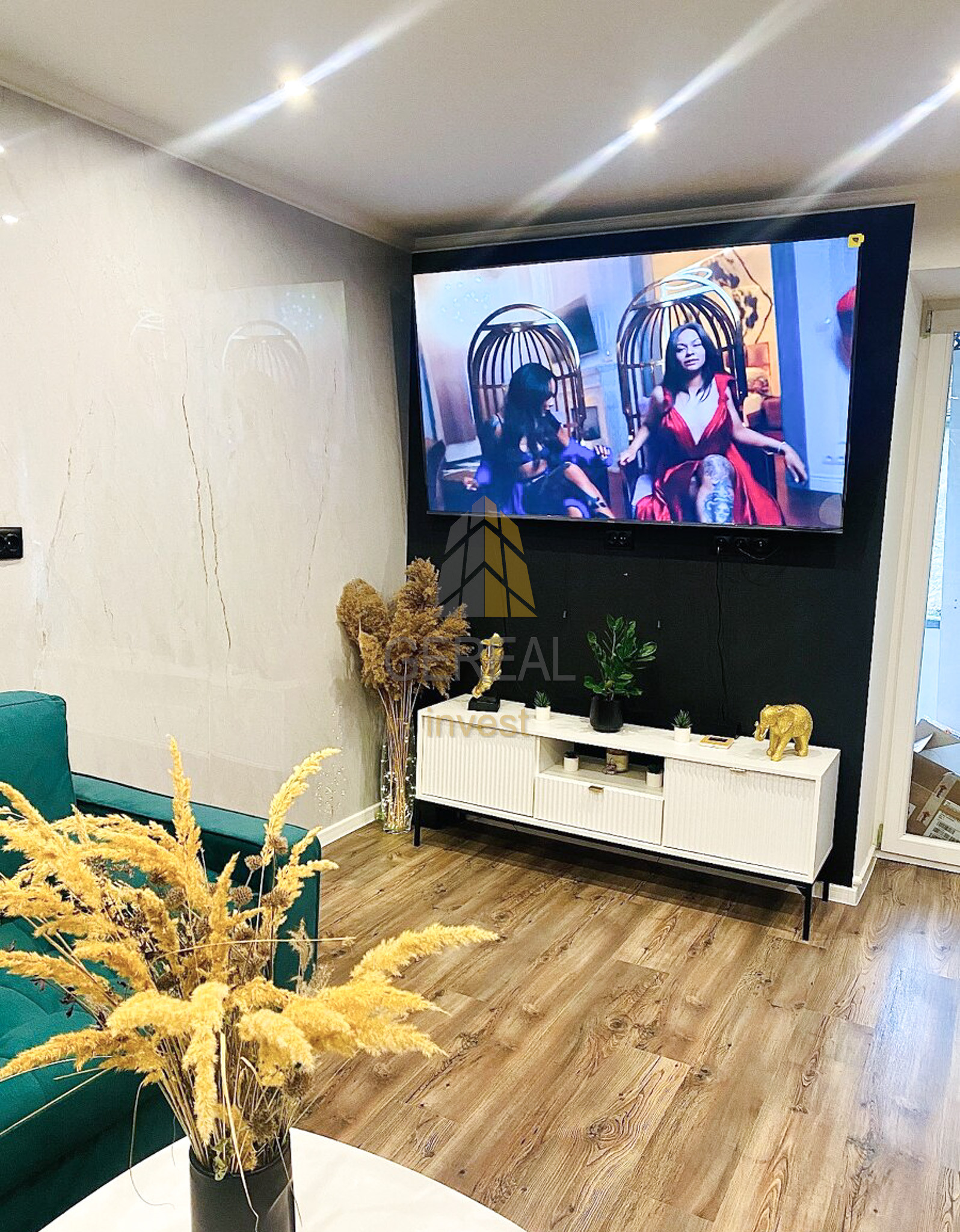 - Priestranná obývacia izba moderne prepojená s kuchyňou a jedálenským kútom.