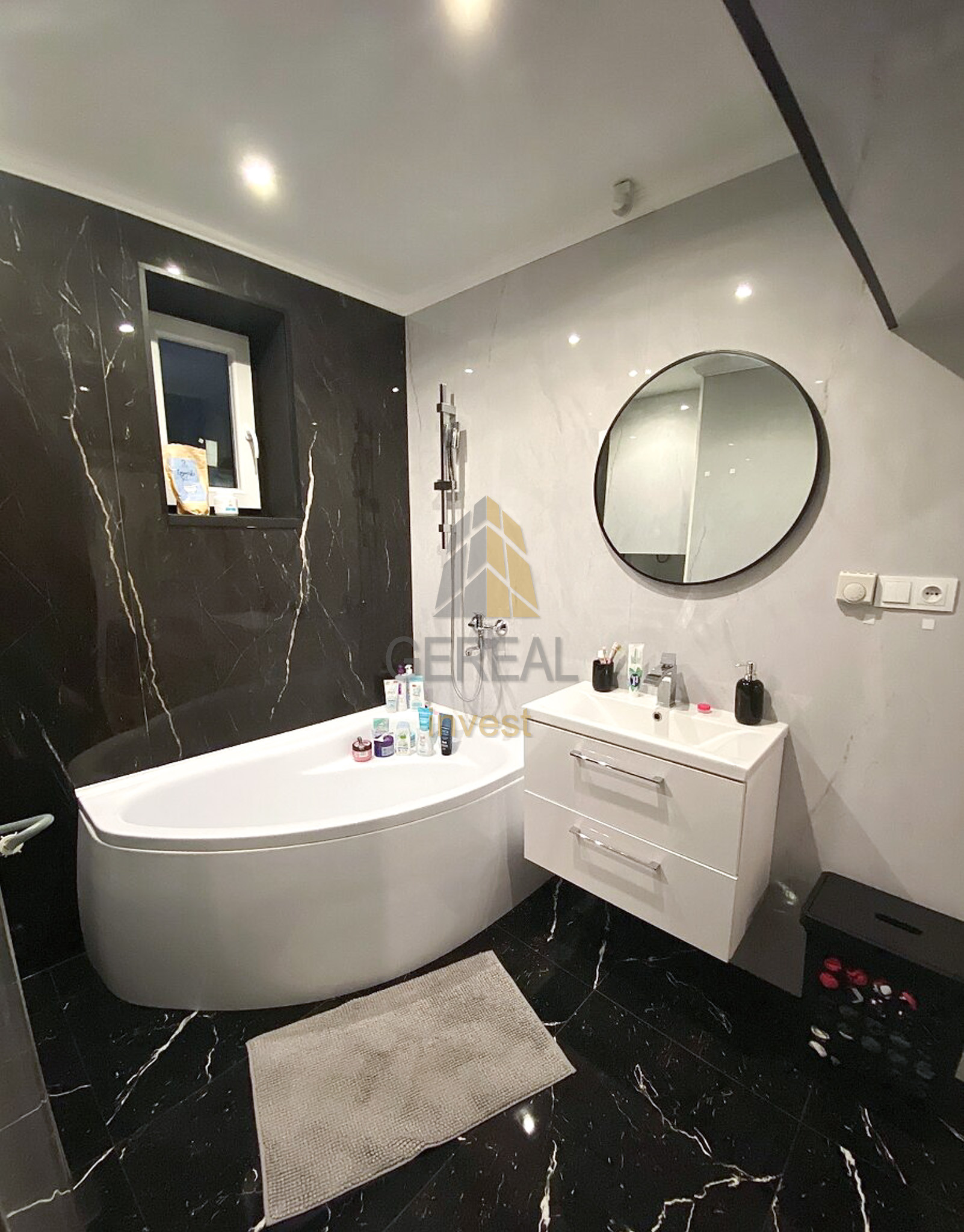 - Veľká kúpeľňa vybavená rohovou vaňou.